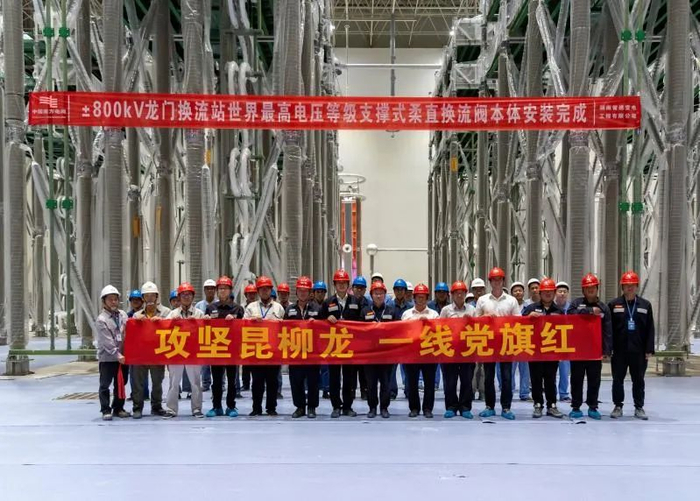 昆柳龙直流工程受端龙门站柔直阀全部安装完成