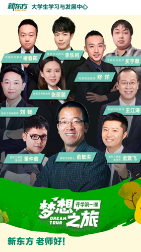 27年来,新东方一直陪伴在大学生身边,以高品质的教学与服务为大学生的学习与发展保驾护航,帮助一代又一代大学生走出更广阔的人生。为了给大学生提供更高质量的全周期一站式学习与发展解决方案,新东方整合优质资源,在2020年5月专门成立了大学生学习与发展中心,在提供四六级、考研、留学考试、教师资格证等考试类教学与服务的同时,也通过专业的职业规划和职业测评、丰富的实习产品和就业指导,帮助大学生找准自己的职业定位、提高未来的职业竞争力,最终助力大学生实现“学习力”与“发展力”的全面提升。自成立以来,新东方大学生学习与发展中心也紧随集团“新东方 老师好!”战略,注重教师的培养与发展,选拔出“百人名师团”,其中部分名师也成为了2020年梦想之旅“开学第一课”的讲师,释放出更大的影响力。