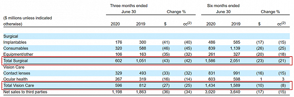 强生视力康:2020年上半年总营收17.62亿美元,同比-23.0%。