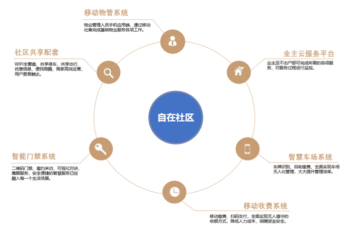 互联网技术的发展不仅仅促进企业实现了智能化管控,更是带动了富力物业智慧社区建设的全面铺开,有效满足了业主对服务体验的需求。早在2011年,富力物业便引入智能化生活方式,自主研发“自在平台”,其中“自在社区”于2016年正式上线,将服务内容做加法,服务流程做减法,为业主、租户、物业人员等社区用户提供便捷快速的交互场景应用。用科技和互联网连接社区内部,对物业进行数字化变革,实现管理智能自动化。