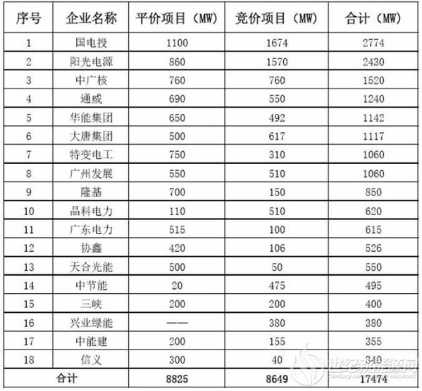 由上述表格可以发现:投资企业共获得8825MW平价上网项目,占第一批平价上网项目总规模的60%;共获得8649MW竞价上网项目,占此次竞价项目总规模的38%;获得项目总容量17.5GW,占第一批平价上网和竞价项目总规模的49%。而阳光电源以2430MW的项目规模成为仅次于国家电投的最大黑马,力压央企中广核,两者之间的竞争亦可见一斑。