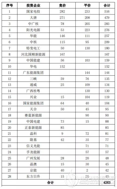 2019年第一批平价和竞价项目中主要企业的项目规模(下表)