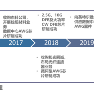 具体来看,AWG芯片系列已与多个国内外大型厂商合作。DFB芯片具备完整工艺及核心技术,尚处于导入阶段,但已成为国内少数掌握全产业链DFB激光器芯片的企业。光纤光缆业务起步较早,收购和光同诚进一步布局光纤连接器业务。
