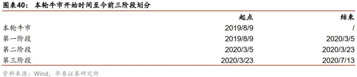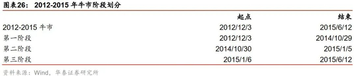 根据本轮牛市开始时间至今的行情走势划分出三个阶段,具体各阶段起止时间点如下: