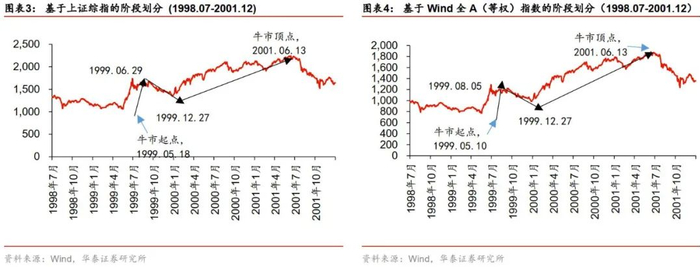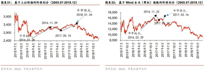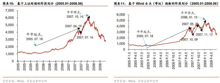 综合考察上证综指与wind全A(等权)指数,在两个均有清晰的分阶段行为特征时,阶段划分以wind全A(等权)指数为准。当wind全A(等权)指数走势不清晰,难以划分阶段时,则以上证综指走势划分为准。