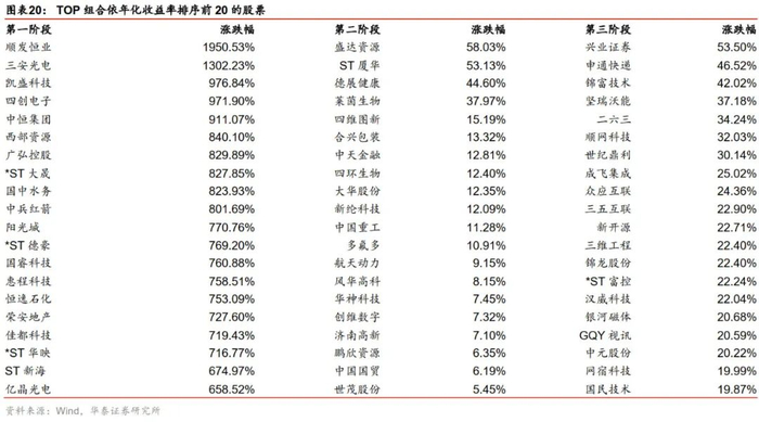 由于篇幅所限在,正文仅展示 TOP 组合中排名前二十的个股。