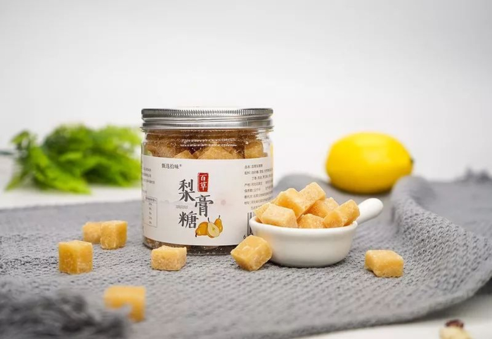 配合梨汁、蜂蜜熬制而成,多种食材合而为一,方才成就一颗沁入脾肺的梨膏糖!