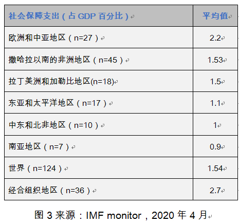 南亚地区拥有18.9亿人口(预计2030年将增至21亿人),约占世界人口总量的四分之一,得益于印度的经济规模,该地区对全球经济增长贡献超过15%。无论是从经济结构还是劳动力方面来看,该地区非正规性劳动力占比很高。从积极的一面来看,该地区的人口红利预示着未来生产力增长空间。然而,该地区的人口高密集度也加大了疫情防控的难度。与其他区域相比,南亚地区的社会安全体系较为薄弱,这不仅体现在体制上,也体现在其较低的平均社会保障支出占GDP比重。