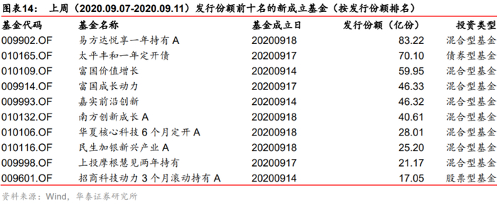 上周(2020.09.14-2020.09.18)新成立48 只基金