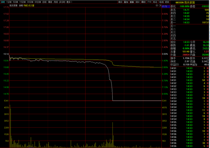 9月21日,我乐家居(603326,SH)早盘走势平淡无奇,但是午后却突然闪崩跌停,当时成交总额仅8343万元。到底怎么回事?