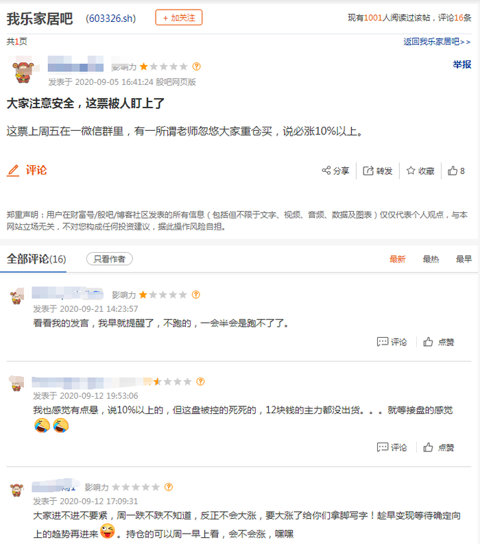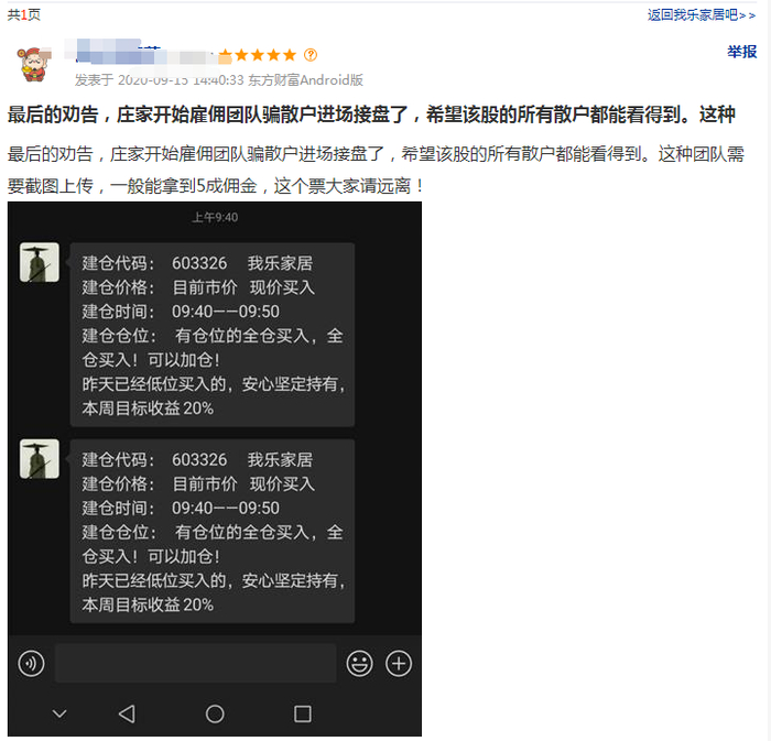 对此,有股吧网友表示,“庄家开始雇佣团队骗散户进场接盘了,希望该股的所有散户都能看得到。这种团队需要截图上传,一般能拿到5成佣金,这个票大家请远离!”,也有网友提前预警称,“这票上周五在一微信群里,有一所谓老师忽悠大家重仓买,说必涨10%以上。”。不过,从网友的反应来看,有不少投资者没有及时出货,被套牢。