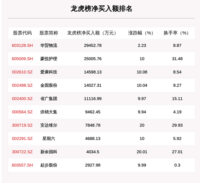 9月21日龙虎榜解析:华贸物流净买入额最多,还有17只个股被机构扫货