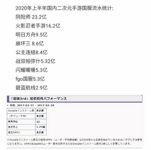 紧接着,米哈游又在2016年9月推出了全新的3D动作类手游《崩坏3rd》,并在2017年上半年拿到了49626.1万元,占到了主营业务收入的84.41%,成为该公司新的重要收入源。即便经过了3年多的正式运营,《崩坏3rd》在今年前6个月,国内手游账目流水的相关网站统计中,依旧拿到了8.6亿元人民币的不俗成绩。而且在海外市场《崩坏3rd》也有斩获。