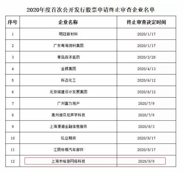 但是,对于成立还不满十年的米哈游来说,新作的登场仅仅停留于话题度或者热度这一层面,而并没能反映在资本市场上。毕竟,就在一周前,证监会最新披露的IPO终止审查企业名单中,米哈游赫然在列,这当然意味着其排队苦等了三年的“上市梦”破碎。