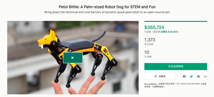 目前,这一新的机器狗项目,已募集365,724美元,已经远远超过总目标的50,000美元。