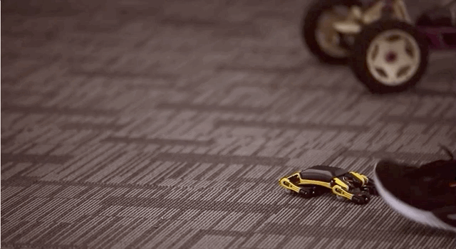 可跑可跳,还可以爬上纸箱子。如果摔倒了,就自己爬起来。