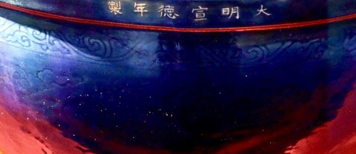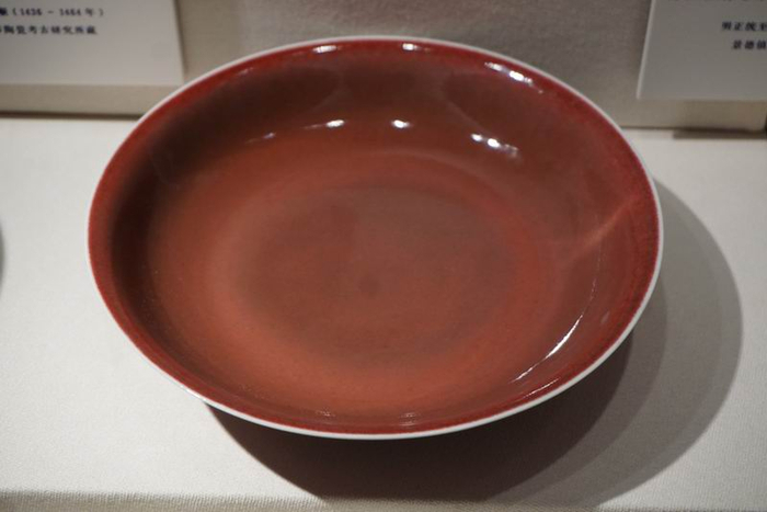 鲜红釉系指明代景德镇御窑烧成的以氧化(CuO)作着色剂的高温红釉。亦称“祭红”、“宝石红”。从传世品和出土物看,自洪武至嘉靖朝,鲜红釉瓷的烧造基本未曾间断,但以永乐、宣德两朝产品最为多见,质量最好,受到的评价亦最高。成书于明代万历十七年(1589年)王世懋《窥天外乘》载:“永乐、宣德间内府/烧造,迄今为贵。其时以骔眼甜白为常,以苏麻离青为饰,以鲜红为宝。”由此可知,明代人将高温铜红釉称作“鲜红”。