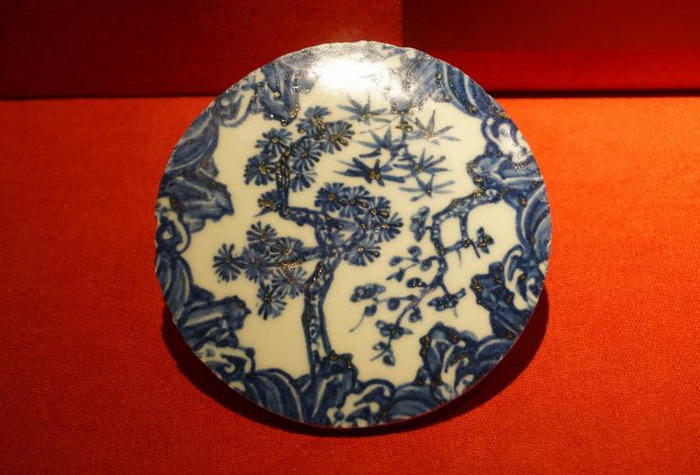 总体来看明代青花瓷一般都造型丰满、浑厚、古朴,线条柔和胎体多较厚重,胎质大都洁白坚致;釉质肥厚滋润,釉色多白中闪青。还有一些青花瓷的造型和纹饰,大量采用来自不同地域的文化元素,反映出明代社会善于吸收优秀外来文化创造崭新艺术品。 青花海水山石松竹梅图盘(残)景德镇出土残件