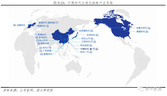 宁德全球化战略产业布局始于2014年,目前已完善海外收购、海外生产基地、全球研发中心等综合布局。宁德时代先后在德国、香港、法国、美国、加拿大和日本等地设立子公司。2017年,宁德投资3000万欧元参股芬兰维美德汽车22%股权。宁德还在图林根州建立生产基地,主要从事锂离子电池的研发与生产,计划于2021年投产,2022年达产后将形成14GWh的产能。