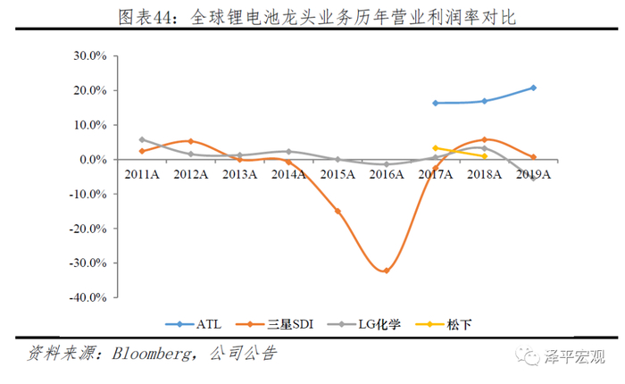目前LG与宁德时代取得阶段性的领先,预计远期宁德与LG将会形成双寡头竞争格局,而竞争核心要素在于成本管理能力。消费电池发展表明,行业稳定后不同企业盈利水平仍会有较大差异。消费电池领先的四家企业中,ATL2018年营业利润率高达19%,远超其他电池龙头,三星SDI 5.71%,LG化学、松下更是处于盈亏平衡附近。盈利能力的差异源于产品溢价、成本控制等方面的差距,远期来看动力电池竞争的核心在于成本管理。