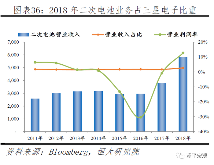 三星电子是三星SDI第一大股东及最大的客户,2018年贡献营收比重达到24.2%。这使得三星SDI定位以服务三星电子为主,资源需要优先三星电子倾斜,难以第一时间响应其他客户需求。并且三星SDI二次电池业务长期处于微利状态,营业收入占比约为2-3%左右,2018年才刚实现扭亏为盈。2017-2018年盈利主要在于储能等非消费类电池需求旺盛。