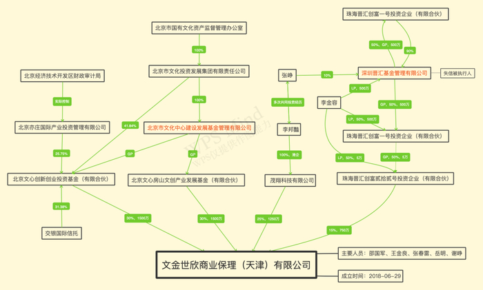 从文心保理的股权结构看,前面两大股东都是国资基金,逐级追溯上去实控人为北京文投集团,最后的实控人是北京市国有文化资产监督管理办公室。