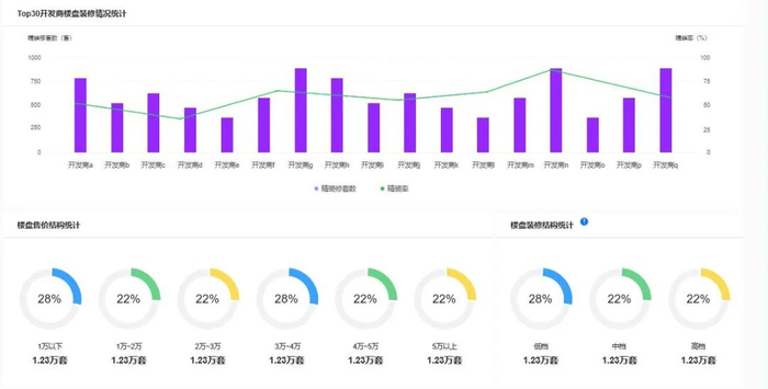 精装楼盘及部品配套数据;帮助企业从政策、市场、客户、竞争对手等多个维度了解精装修市场的现状、趋势、机会、风险,辅助企业准确地预判市场走向,及时调整/优化营销策略,提前做好产品和渠道布局。