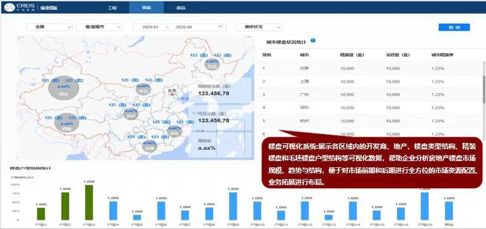 致力于提供全方位、多维度、实时动态的数据信息,构建主要业务是针对中国房地产产业链的上游的土地交易、工程项目及楼盘项目、精装部品配套等信息,为开发商和部品企业市场洞察及机构决策者进行市场投资等提供决策支持。
