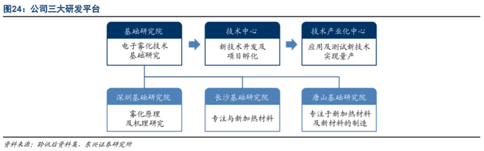 研发体系强大,保障公司占据技术前沿地位。公司的研发体系由基础研究院、技术中心、技术产业化中心三大部门组成。基础研究院专注于探索及发展雾化领域基础知识,技术中心专注于应用基础知识进行新技术研发及项目孵化,技术产业化中心专注于应用及测试新技术,以实现产品规模化生产。通过这一完整的研发链条,公司可以从雾化领域基础知识开始积累优势,并有效推动其转化为技术和实际应用。