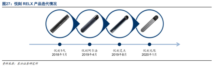 悦刻:2020年上半年专卖店突破2500家,其他形式零售门店超过10万家;其中2020年1-5月即开业超过1000家专卖店。在电子烟线上销售遭禁的监管环境下,领先国内其他品牌的门店密度有利于悦刻留存已有消费者,吸引新的消费者,并塑造自身品牌力。