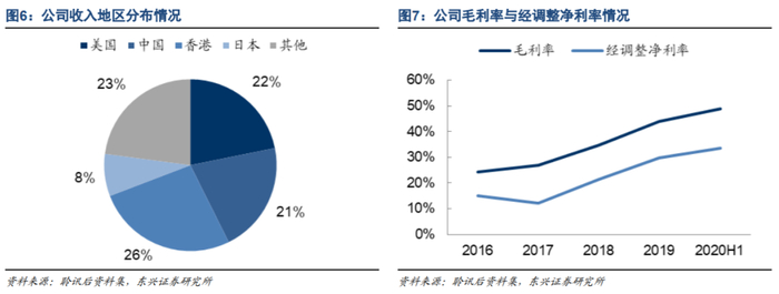 电子雾化设备最大制造商,兼具强劲增长与高利润率。公司是全球第一大电子雾化设备制造商,2019年市占率达16.5%,超过第2-5名总和。公司雾化产品矩阵丰富,并拥有全球领先的FEELM雾化技术。公司拓展了诸多下游龙头客户,分享其高增长红利。2020年上半年公司收入同比增长18.5%,经调整后净利同比增长40.4%,经调整后净利率高达33.7%。