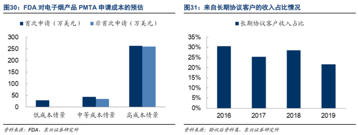 PMTA有利于增强客户粘性。美国PMTA审查的很大一部分时间耗费和成本支出,来源于对产品特性的研究与测试。一旦更换雾化芯等重要组件,将意味着产品整体需要重新研究测试,并提请FDA审查。如果客户在产品迭代过程中沿用公司的雾化芯,利用已有研究数据,便有望降低PMTA审查的成本。此外,PMTA对产品制造环节合规性也有着严格的审查,公司作为行业内最优秀的制造商之一,有助于客户的产品通过PMTA并上市销售。