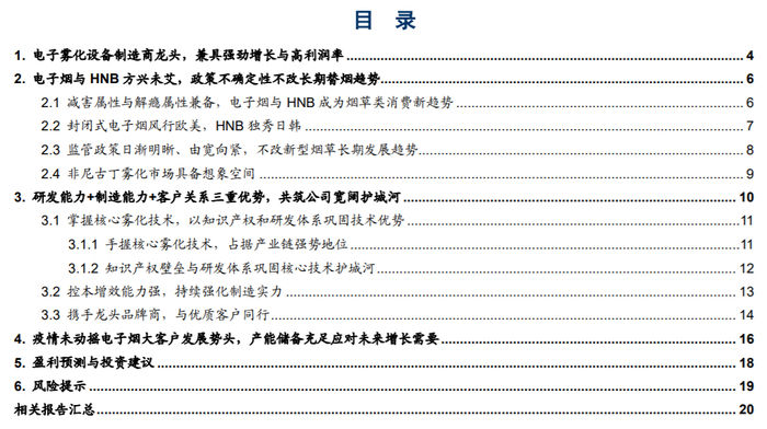 1、电子雾化设备制造商龙头,兼具强劲增长与高利润率