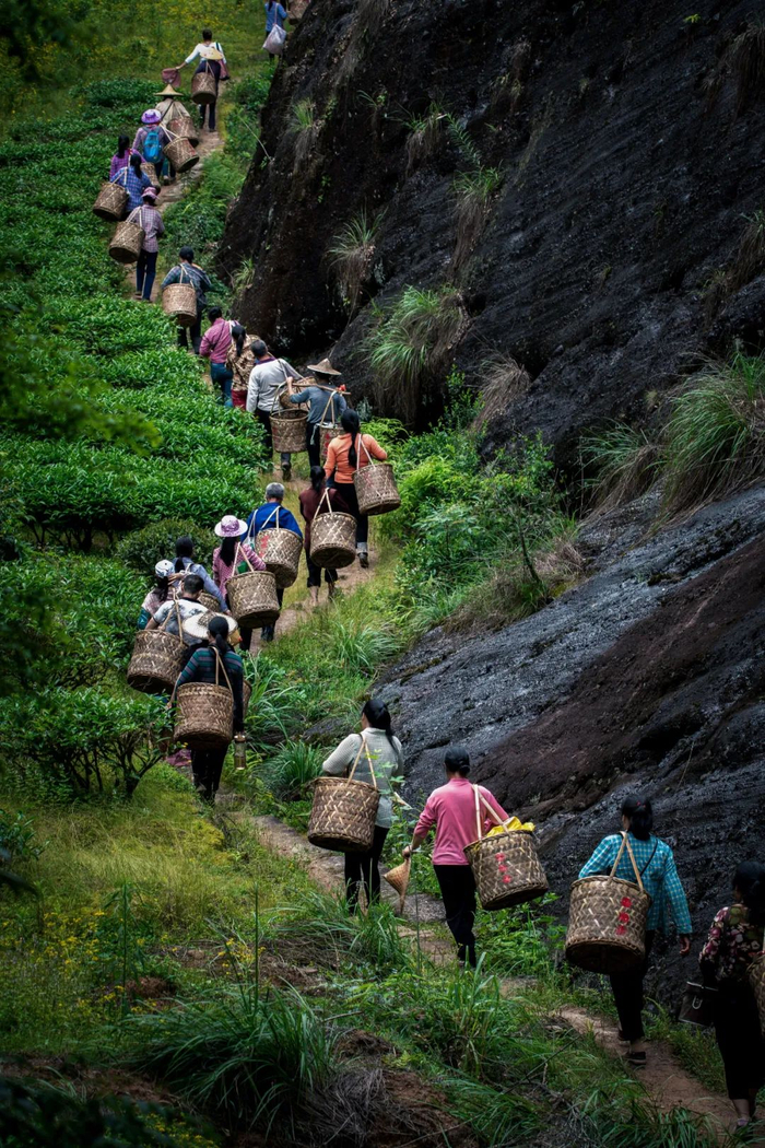 岩茶,生长在丹霞地貌的岩缝之中,因“岩岩有茶,非岩不茶”而得名。这便注定了它的采摘难度。