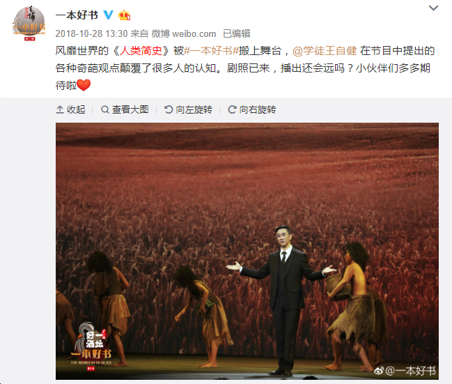 2018年11月,大型场景式读书节目【一本好书】中,演员王自健以脱口秀的方式,趣味解读书中颠覆了无数人认知的观点。
