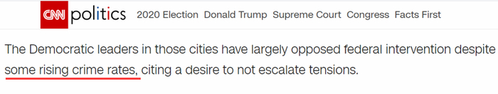 因此,尽管CNN在其报道中又强调“绝大多数抗议者都是和平的”,纽约、西雅图和波特兰选择“冷处理”抗议者的暴乱行为后,三市的犯罪率出现明显增加的情形,还是给了特朗普进行政治炒作的“炮弹”——尤其是特朗普在今年大选中打出的一个最重要的竞选口号,就是他要维护美国社会的“法律与秩序”。