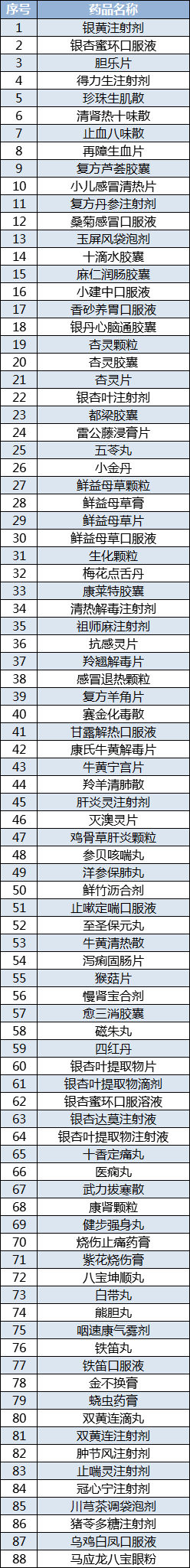 被调出的药品中,有136种为西药,88种为中成药。梳理发现,本次被调出的药品不乏大量常用药,如治疗糖尿病的苯乙双胍、治疗皮肤疾病的卤米松、抗生素类药品克林霉素、解热镇痛类药品布洛芬以及抗蛇毒血清注射制剂、感冒退热颗粒、小儿感冒清热片、感冒退热颗粒、双黄连注射剂、复方丹参注射剂等。