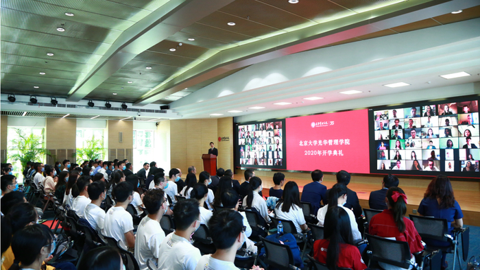 9月19日下午,北京大学首届“未来领导者”国际本科项目的36名同学参加了在北京大学光华管理学院举办的开学典礼。典礼以线上线下结合的方式进行,联合国教科文组织前总干事伊琳娜·博科娃通过视频向光华新生表示祝贺。光华管理学院院长刘俏以及所有首届项目学生来自合作院校的院长都通过不同方式,向学子们表达了殷切的期望。开学典礼由光华管理学院党委书记马化祥主持。