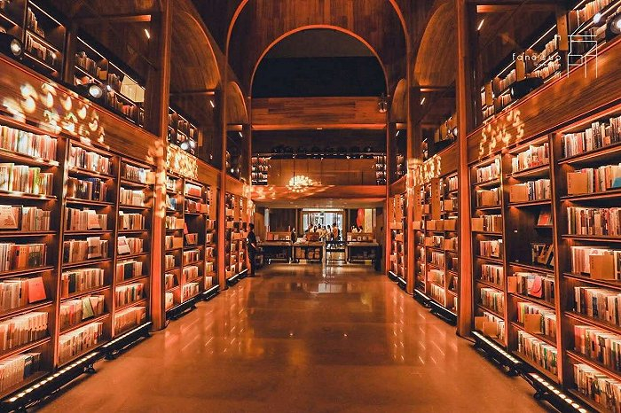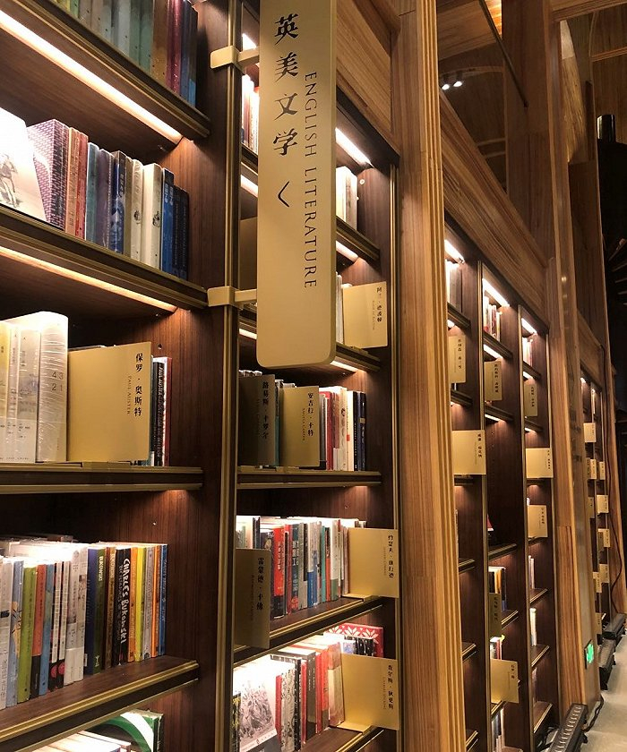 在书架之间会立起棕黄色的金属导览牌和标有重要作家名字的书立,方所书店一位工作人员说,自己每每穿过这些门洞与书立的时候,都会有种很特殊的感受,好像走过了京都伏见稻荷大社的“千鸟百居”中的一个个朱红色牌坊。