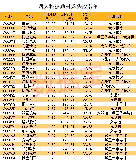 多晶硅、光伏概念、光刻机、第三代半导体等四大题材近期牛股不断,谁是龙头?