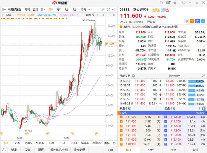 平安好医生的股价也表现出色,从去年底的50元左右,到今年的高点135元,最大涨幅也翻倍有余,可见市场对这类型公司的看好。