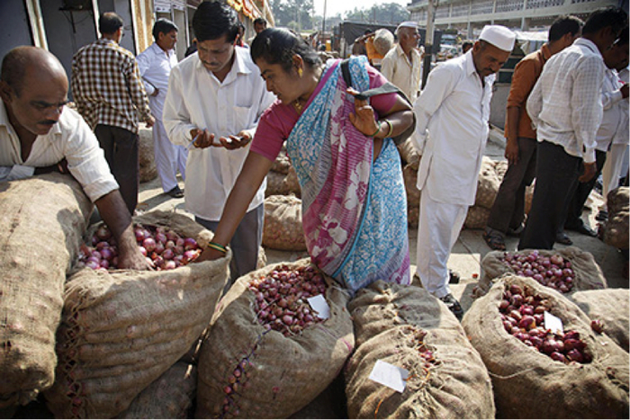 经过分级,戴夫卡家最好的洋葱被装上一辆旧拖车,和邻居家的农作物一起,在坑坑洼洼的路上颠簸数小时,到达32公里外的拉萨尔加昂镇市场。印度政府规定,所有农产品都要在政府管理的市场里交易,农民须向市场支付相当于销售额1%的管理费,并向销售代理支付4%的佣金。