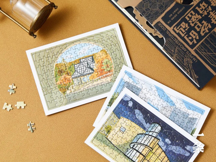 当你在书中完成环球建筑游历之旅后,可以动手拼图,拼完后放入相框,就是一个充满审美的居家摆件。