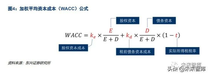 企业的估值模型中预期现金流的折现率 r(由 WACC 得出)由股权资本的折现率和债权资本的折现率两部分 组成,而股权资本的折现率由股权资本成本和财务杠杆得出,股权资本成本由 CAPM 公式计算得出。