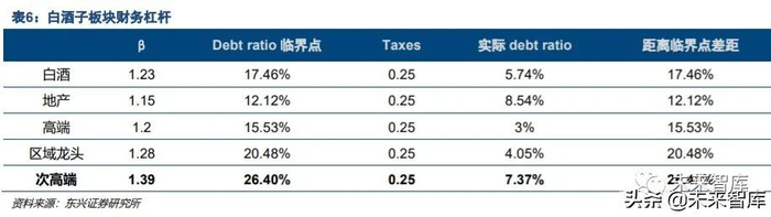 5. 财务杠杆的影响:白酒板块财务杠杆极低,利率走高具备相对投资价值