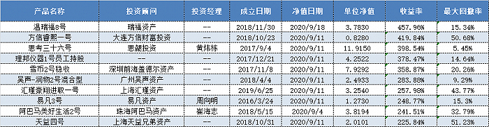 表格:今年以来收益率排名前十位的私募产品情况(数据截至9月22日更新)