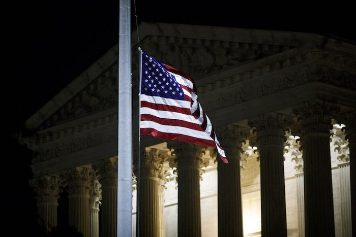 9月18日,位于美国华盛顿的美国联邦最高法院降半旗,向大法官金斯伯格致哀。