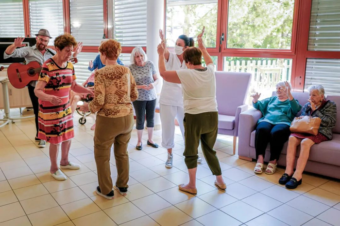 8月4日,法国尼斯,志愿者给养老院里的长者们表演