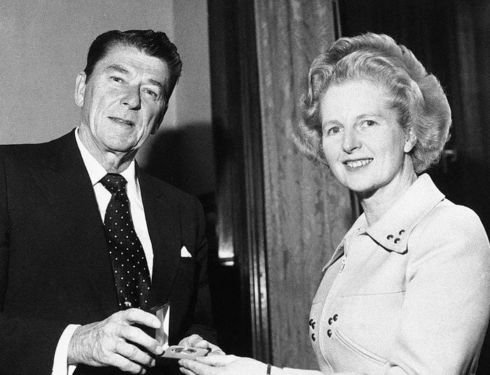 前美国总统里根(左)和前英国首相撒切尔夫人(右)