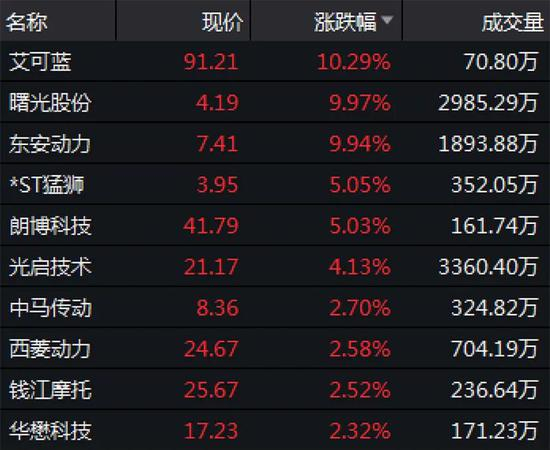 除了旅游股之外,同属可选消费的汽车板块同样表现出色。主营发动机尾气治理产品的艾可蓝早盘上涨10.29%。曙光股份、东安动力封上涨停。
